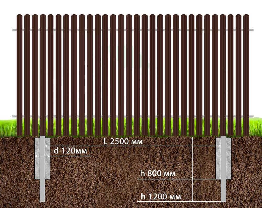 Минимальная глубина — 80 см для заборов до 2 м высотой