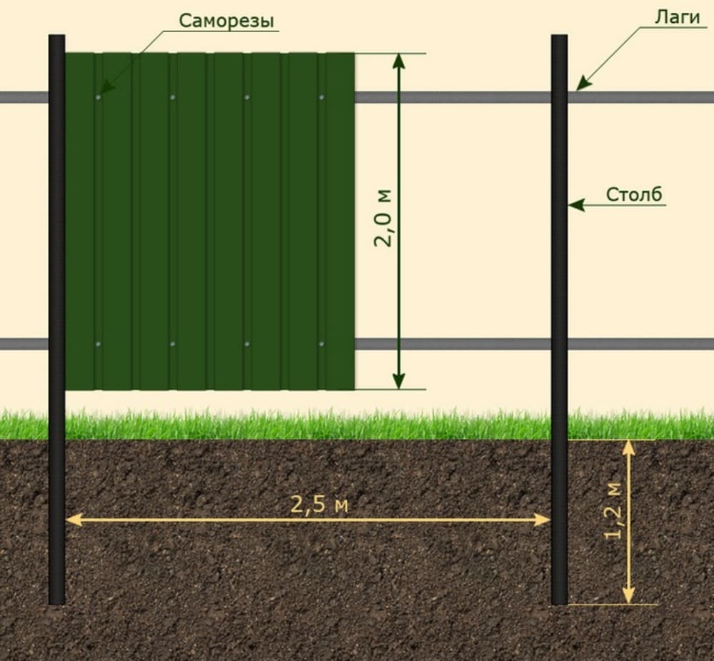 Шаг между столбами Стоимость материалов Сложность монтажа Устойчивость 2 метра Высокая Простой Максимальная 2.5 метра Средняя Средний Хорошая 3 метра Низкая Сложный Удовлетворительная
