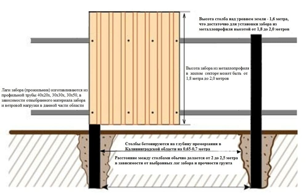 — Металлический забор: Для металлических столбов рекомендуется закапывать их на 0,5-0,7 метра в зависимости от высоты конструкции.