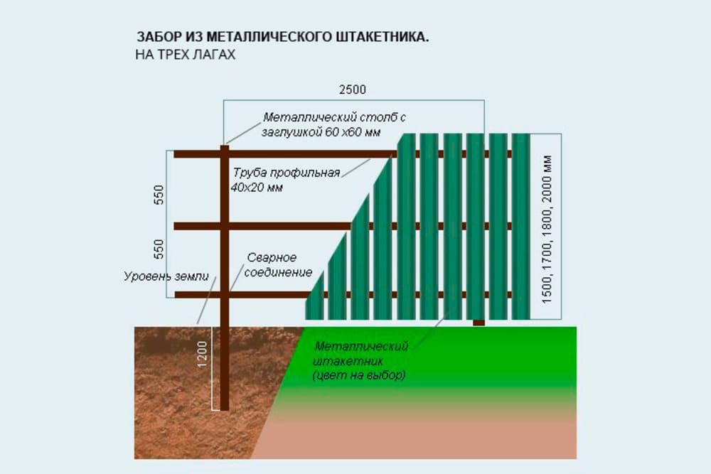 Для металлического штакетника — 3 мм (учет теплового расширения)