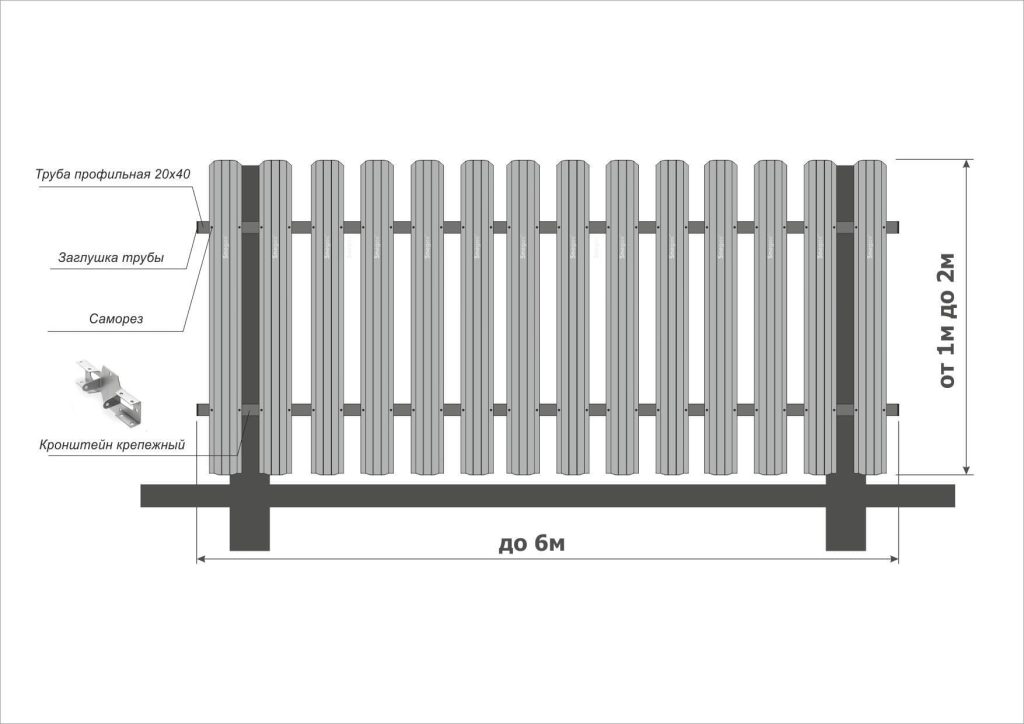 Важно помнить: общая высота забора складывается из высоты штакета плюс зазор от земли (обычно 5–15 см) и возможной декоративной планки сверху.