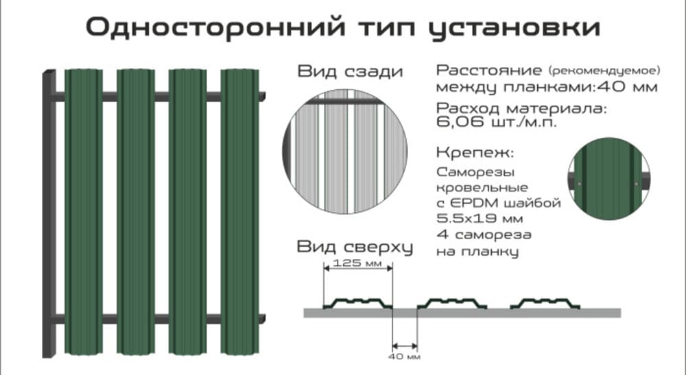 — Полное отсутствие зазора при широких штакетинах в ветреных районах — повышенная нагрузка на крепёж и соединения.